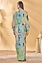 Blue & Green Crepe Silk Printed Ruched Kaftan