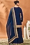 Featuring a blue kurta in raw silk base with v-neck, side zipper and lace embellishment. It is paired with flared pants and an organza dupatta. Accentuate it with statement earrings and heels for a festive occasion.