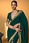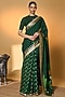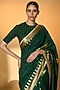 Featuring a bottle green saree in raw silk base with pinstriped piping, gota border, and tropical foil print. It is paired with a raw silk blouse piece having a motif embroidery and a tropical digital print. Accentuate it with statement jewellery and wedges for weddings or sangeet ceremonies.