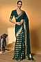 Bottle Green Raw Silk Tropical Foil Printed Saree Set