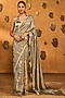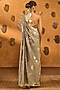 Claymelt Grey Raw Silk Totem Line Foil Printed Saree Set