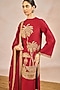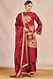 Cranberry Red Silk Kashti Motif Embroidered Kurta Set