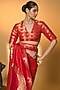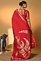 Featuring a crimson red ombre saree in banarasi silk base with chand motif detailing. It is paired with an unstitched blouse piece. Accentuate it with traditional kundan polki jewellery, a classic potli bag and elegant heels for a stylish ensemble, ideal for wedding ceremonies, festive occasions or grand family celebrations.