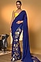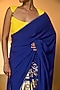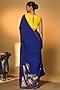 Featuring an electric blue saree in crepe silk base with placement foil print and pinstripe piping detail. It is paired with an unstitched blouse piece. Accentuate it with jhumkas, a coordinated potli bag and embellished heels for a stylish ensemble, ideal for festive gatherings, wedding functions or celebratory evenings.