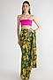 Featuring an emerald green saree in crepe base with basil and floral digital print. It is paired with a matching blouse piece.