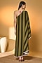 Green Crepe Silk Printed One-Shoulder Kaftan