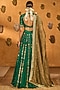 Green Raw Silk Foil Printed Crushed Lehenga Set