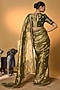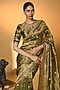 Featuring a green saree in tissue base. It is paired with an embroidered unstitched blouse piece. Accentuate it with traditional gold jhumkas, a textured potli bag and classic heels for a stylish ensemble, ideal for festive gatherings, cultural celebrations or evening functions.