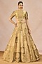 Masaba presents a green lehenga in tissue and organza base with paankh bagh, kashmiri kali and gul jharokha motif embroidery. It is paired with a tissue blouse, a can-can and and a soft embellished dupatta. Elevate this regal lehenga with kundan jewellery, a sleek bun adorned with fresh flowers and dewy makeup for a timeless bridal look.