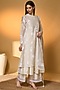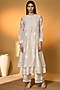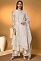 Featuring an ivory jacket in chanderi base with a V-neckline, crochet lace detailing, and screen print. It is paired with an embroidered raw silk anarkali, raw silk straight pants and a chanderi screen-printed dupatta. Style it with flats and minimal accessories for a festive-ready look.