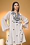 Featuring an ivory mini dress in crepe silk base with a split neckline, bell sleeves, side pockets, tasse;s detail and embroidery. Style this dress with pearl studs or zircon danglers, a clutch bag and stilettos, great for parties, dinner or evening outings.