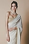 Featuring an ivory saree in georgette base. It is paired with a tissue bustier. Accentuate it with statement jewellery, a sleek clutch and block heels for a graceful look, perfect for festive parties or evening events.