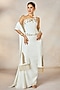 Masaba features a mesmerizing Ivory Draped Skirt Set that captivates with its elegance. The eye-catching corset top is crafted in heavy crepe with gold, moti, zardosi, sequins and cutdana embroidery. It is paired with a draped skirt and a stole having ananas motif embroidery. Accessorize it with statement jewellery and heels for weddings or sangeet ceremonies.