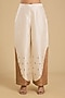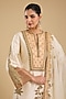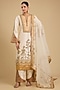 Featuring an ivory kurta in raw silk base with dainty motif embroidery. It is paired with pants and a pure organza patchwork dupatta. Style this kurt set with polki stud earrings, a sleek bun and juttis for festive occasions, weddings or sangeet ceremonies.