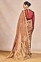 Masaba presents a maroon saree in georgette blend and tissue base with gul jharokha and paankh bagh motif embroidery. It is paired with a sheer organza kurta and a georgette structured bustier. Style this luxurious saree with statement earrings and bangles for a wedding or festive occasion to complement the regal vibe.