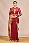 Maroon Georgette Blend Paankh Bagh Motif Embroidered Saree Set