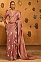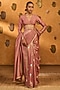 Masaba presents a mesmerizing mauve saree in tissue silk base with foil print and motif embroidery. It is paired with an unstitched blouse. Elevate the look with statement jhumkas, embellished heels, a potli bag and a sleek bun for regal wedding ceremonies.