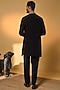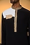 Featuring a black and white kurta in crepe silk base with a mandarin collar, turtle tale tissue applique embroidery, and concealed placket. It is paired with crepe silk straight pants having pockets. Style it with mojaris and malas for a festive occasion, wedding, sangeet or engagement ceremony.