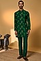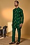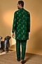 Featuring a bottle green kurta in raw silk base with a mandarin collar, pocket detailing, concealed placket, and digital print. It is paired with raw silk straight pants having pockets. Style it with mojaris and malas for a festive occasion, mehendi, wedding, sangeet or engagement ceremony.