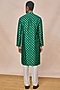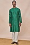 Featuring a green kurta in raw silk base with a mandarin collar, pocket detail, concealed placket and foil print. It is paired with straight pants having pockets. Style it with mojaris for a festive occasion, intimate pooja, mehendi, wedding or engagement ceremony.