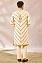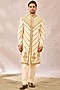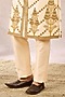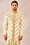 Featuring an ivory sherwani in heavy raw silk base with gold, sitara, moti and zardosi embroidery. It is paired with pants and a viscose raw silk kurta. Style it with mojaris for a wedding, engagement or a sangeet ceremony, radiating traditional charm and elegance.
