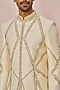 Ivory Raw Silk Cutdana Embroidered Sherwani Set