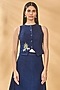 Featuring a midnight blue waistcoat in denim base with patch paw tree print, front button closure and a round neckline. It is paired with a skirt having side slit and stitch detail. Accentuate it with zircon dangler earrings, metallic heels and a polti bag for destination weeding, sangeet or engagement ceremonies.