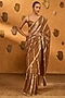 Mocha Brown Ombre Raw Silk Foil Printed Saree Set