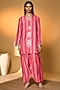Featuring a multi-colored kurta in raw silk base with a V-neckline, bell sleeves, and heart of Eden embellishments. It is paired with raw silk farshi style pants and an organza dupatta. Accentuate it with dangler earrings and heels for a festive occasion or pooja ceremony.