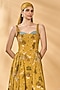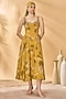Masaba presents a mustard corset dress in crepe silk base with print and gathered side panels. Accentuate it with dangler earrings, a sling bag and heels for evening soirees.