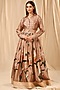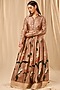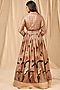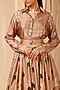 Featuring a oatmeal lehenga in raw silk base with floral print and embellishments. It is paired with a matching button down shirt and a belt having toffee mascot.