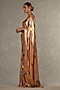 Masaba features a mesmerizing Ochre Saree Set that captivates with its elegance. The eye-catching saree is crafted in lame with masakali digital print. It is paired with an unstitched sequins georgette blouse piece. Accessorize this designer saree set with statement jewellery for a wedding, engagement and sangeet ceremony.