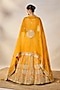 Masaba features a mesmerizing Ochre Lehenga Set that captivates with its elegance. The eye-catching lehenga is crafted in raw silk with motif, dori, sitara kaam, gota embellishment and pocket detailing. It is paired with a can-can, a raw silk and tulle blouse having dori, sequins and gota kaam, including an organza embroidered dupatta. Accentuate it with statement jewellery, a potli bag and heels for weddings or haldi ceremony.