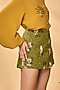 Masaba presents an olive green skort in cotton linen base with side seam zipper closure and print. Accentuate it with a shirt, dangler earrings, a sling bag and heels for evening soirees.