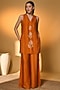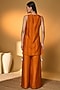 Featuring an orange kurta in raw silk base with a V-neckline, pearl, tassels, and bead embellishments. It is paired with raw silk flared pants having side seam zipper. Accentuate it with dangler earrings and heels for a festive occasion or pooja ceremony.