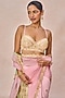 Featuring a pink saree in natural crepe base with gul jharokha and pankh motif embroidery. It is paired with a hand embroidered blouse. Elevate the look with kundan or statement jewellery, paired with a chic potli bag and elegant heels for a polished finish. Ideal for weddings, sangeet celebrations, cocktail soirees, or festive receptions.