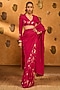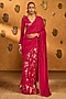Masaba presents a mesmerizing pink saree in raw silk base with foil print. It is paired with an unstitched blouse. Elevate the look with statement jhumkas, embellished heels, a potli bag and a sleek bun for regal wedding ceremonies.