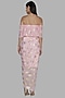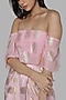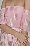 Featuring a pink top in crepe base with foil print. It is paired with a matching dhoti skirt.