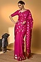 Rani Pink Raw Silk Chand Phool Foil Printed Saree Set