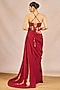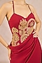 Masaba presents a red sculpted corset gown in crepe base with gul jharokha and methi makaai motif embroidery. Style it with statement earrings and heels for a bold, glamorous look. Perfect for cocktail nights, festive parties, or receptions.