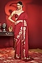 Masaba features a statement Red Madras Muse Saree that captivates with its elegance. The eye-catching saree is crafted in mul silk, adorned with opulent gold foil print and hand-embroidered detailing. A bold Tamil letter commands attention on the palla, while the Masaba and Palm motif repeat elegantly in a circular emblem. It is paired with a mul silk blouse piece. Accentuate it with statement gold or antique jewellery and heels for a classic look.