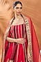 Featuring a red anarkali in raw silk base with adjustable strap and embroidery. It is paired with embroidered pants and a silk organza dupatta. Accentuate with statement earrings and heels for a festive occasion.