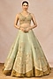 Sage Green Tissue Kashmiri Kali Motif Embroidered Lehenga Set