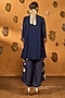 Masaba presents a mesmerizing sapphire blue kurta in raw silk base with hand embroidery, coin embellishment and gota detail. It is paired with zari checkered pants having foil print. Enhance your style by embracing ornate chandbalis, lustrous metallic heels, soft curls and a clutch to evoke festive grandeur.