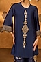 Sapphire Blue Raw Silk Hand Embroidered Kurta Set