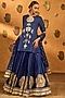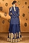 Featuring a sapphire blue short kurta in zari check base with wish drop foil print, dori and tassels detail. It is paired with a raw silk printed flowy skirt and a mul silk dupatta. Accentuate it with kundan or zircon jewellery, block heels and a box clutch for festive, pooja or sangeet nights.
