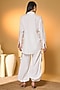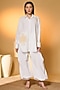 Featuring a white oversized shirt in cotton base with screen print and contrast tassels detail. It is paired with pleated barrel pants having an adjustable elastic on hem, side pockets and hand elastic belt. Style this co-ord set with a layered gold chains and tinted sunglasses for a resort lunch.