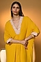 Yellow Crepe Silk Tassels Embellished V-Neck Kaftan