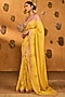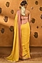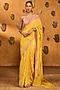 Featuring a yellow saree in mul silk base with motif foil print. It is paired with a jacquard silk unstitched blouse fabric. Accentuate it with swarovski or pearl jewellery, block heels and a box clutch for daytime weddings, haldi or sangeet nights.