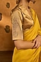 Featuring a yellow saree in woven jacquard silk base with an embroidered borders. It is paired with a tissue unstitched blouse fabric. Accentuate it with swarovski or pearl jewellery, block heels and a box clutch for daytime weddings, haldi or sangeet nights.